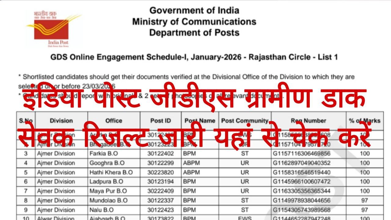 India Post GDS Result 2026: इंडिया पोस्ट जीडीएस रिजल्ट जारी यहां से चेक करें